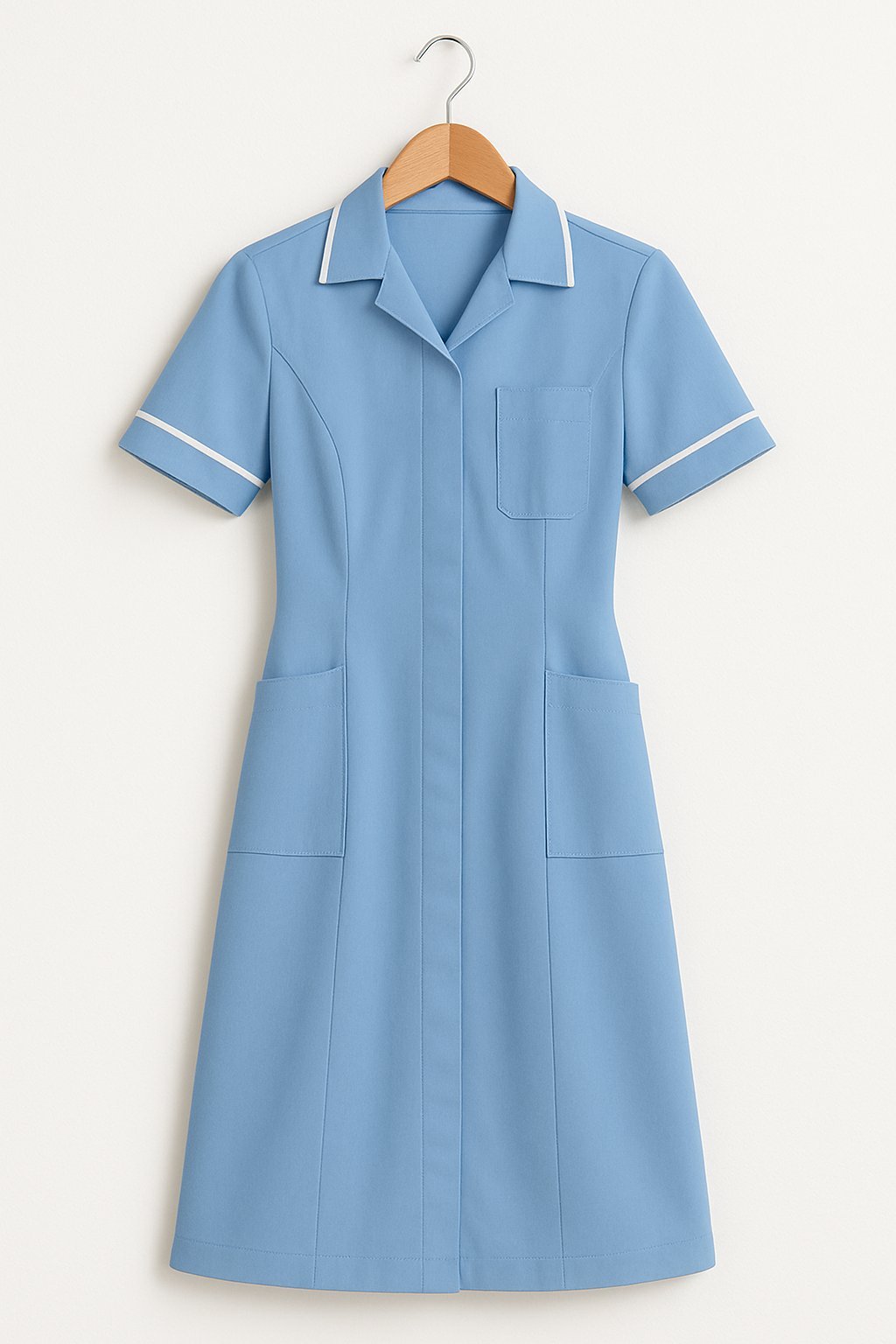 The Classic Nurses Dress is a timeless nurse dress that blends practicality with a polished look. Lightweight, breathable fabric keeps you comfortable during long shifts, while a tailored fit ensures professional presentation. Multiple pockets provide space for essential items, and the durable construction stands up to frequent washing. Perfect for healthcare professionals seeking comfort and style.